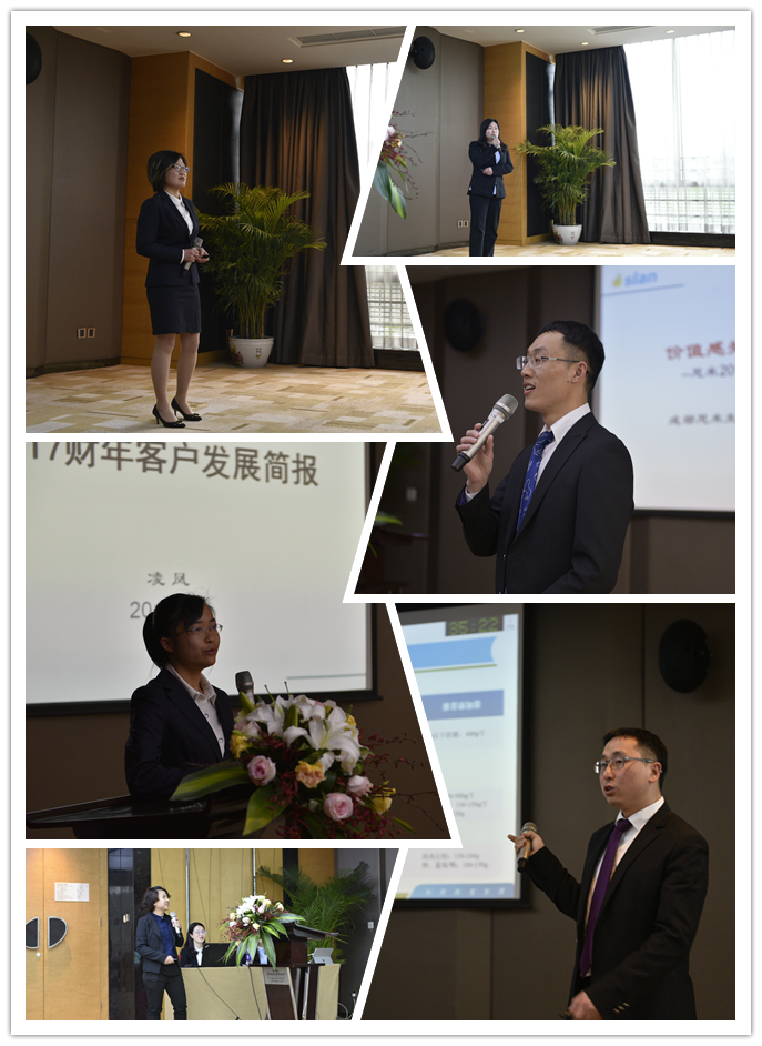 年會(huì)第一天,公司總經(jīng)理王峰先生率先做《2018,為偉夢(mèng)而活》主題報(bào)告,報(bào)告回顧了思來(lái)“一五計(jì)劃”,總結(jié)了2017財(cái)年公司的業(yè)績(jī)與成就,提出了2018財(cái)年?duì)I銷(xiāo)目標(biāo)與策略。2017年,公司在生意深度和廣度上持續(xù)推進(jìn),TOP50客戶(hù)數(shù)量進(jìn)一步增加;升級(jí)研發(fā)能力和團(tuán)隊(duì)能力,打造思來(lái)核心競(jìng)爭(zhēng)力;必恩迪市場(chǎng)份額繼續(xù)擴(kuò)大,在四大高效能藥添中排名第二。2018財(cái)年,基于行業(yè)政策變化和比恩迪產(chǎn)品唯一合法文號(hào)的優(yōu)勢(shì),王總提出“2018,必定天下--共創(chuàng)DMBP的必恩迪時(shí)代”年度策略。