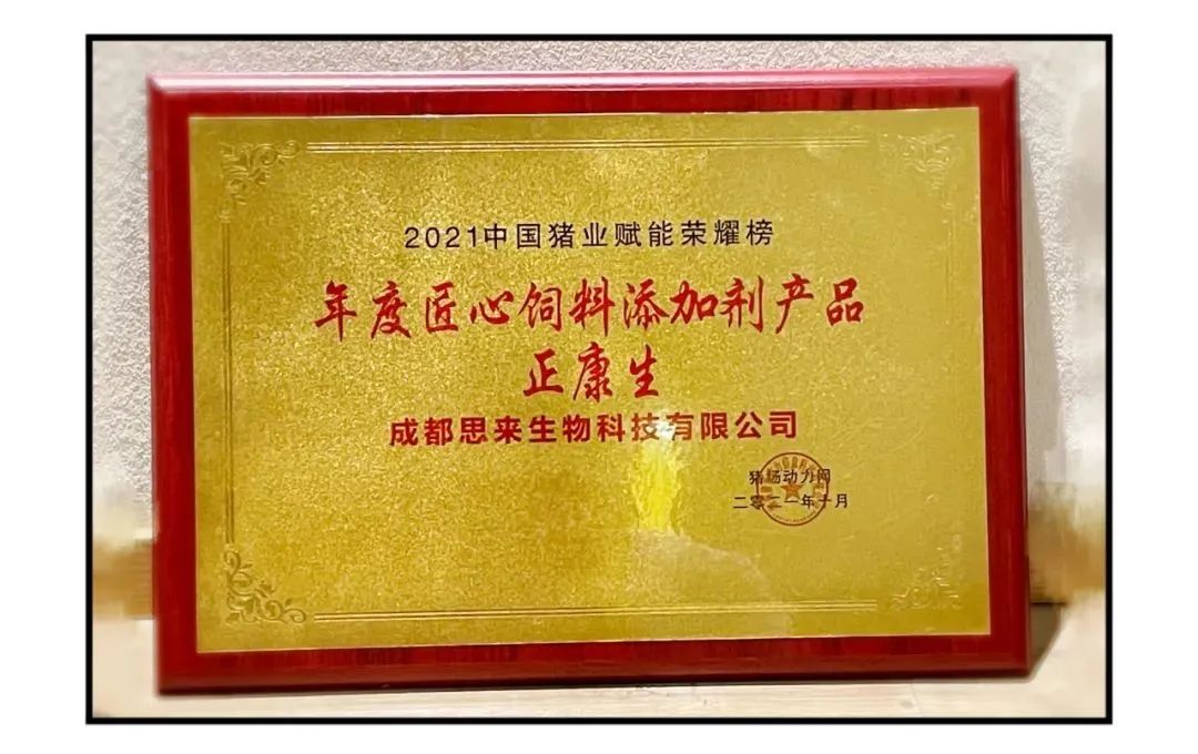 接著,會(huì)議第二項(xiàng)議程——“2021中國(guó)豬業(yè)賦能榮耀榜頒獎(jiǎng)典禮”召開(kāi)。本次頒獎(jiǎng)典禮上,思來(lái)生物旗下產(chǎn)品——正康生®Plus榮獲“2021年度匠心飼料添加劑產(chǎn)品”獎(jiǎng)項(xiàng)
