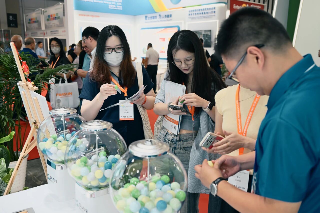 各種有趣、有顏的獎(jiǎng)品陸續(xù)被送出??诳谙鄠飨拢嗟赜^眾來(lái)到思來(lái)生物展臺(tái)前了解產(chǎn)品、公司理念和玩游戲。還未參與的朋友可以11日、12日到場(chǎng),禮品數(shù)量有限,先到先得哦