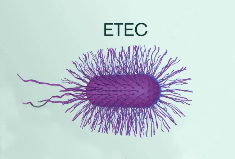 ETEC 導致腹瀉的流程大致分為 2 個過程: 第一步 ? ETEC 的菌毛(黏附素)可識別腸上皮細胞受體,并黏附到腸上皮細胞上; 第二步 ? ETEC 生長過程中產(chǎn)生腸毒素,特別是熱敏性腸毒素,會迅速引發(fā)分泌性腹瀉。